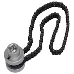 Satin finished carbon steel body with 1/2"Sq drive for use with ratchet wrenches. Heavy-duty thin double chain. Essential tool for removing commercial air brake filters.