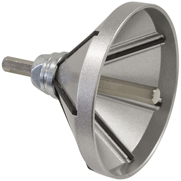 Features an 8mm hex shank for use with a drill or hex driver.