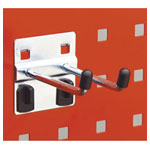 These double prong hooks from Sealey are designed for use with wall storage racks. They latch onto the panel holes and can be secured quickly and effectively with the retaining clips supplied.
