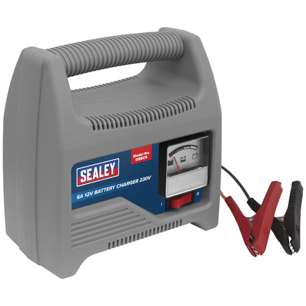 Sealey DSBC6 Battery Charger 12V, 6A, 230V, 1.8m Cable with Insulated Clamps