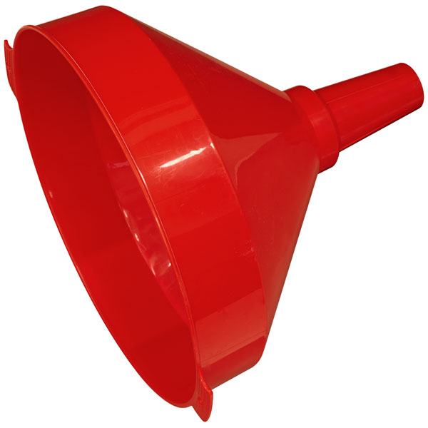 Polyethylene funnel resistant to oil, fuel and some acids.