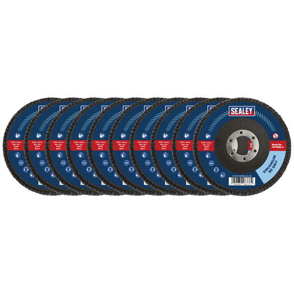 Sealey FD1158010 115mm Zirconium Flap Discs 80Grit 22mm Bore - Pack of 10