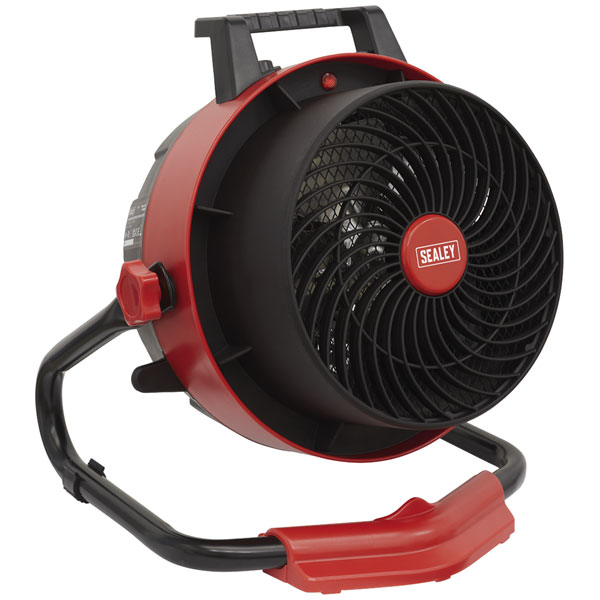 Portable Industrial heater with a fan only and two heat settings. Tough composite case with integral carry handle. Full range ambient room thermostat maintains temperature. Fan doubles as cool air blower for use in the summer. Supplied without plug.