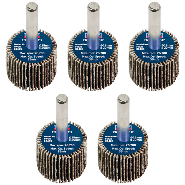 Sealey FW2520405 25 x 20mm Abrasive Flap Wheel on 6mm Shaft 40Grit - Pack of 5