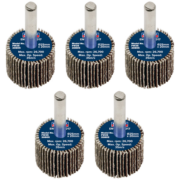 Sealey FW2520805 25 x 20mm Abrasive Flap Wheel on 6mm Shaft 80Grit - Pack of 5