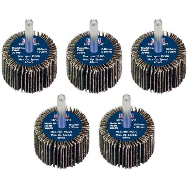 Sealey FW4030405 40 x 30mm Abrasive Flap Wheel on 6mm Shaft 40Grit - Pack of 5