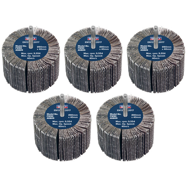 Sealey FW8040805 80 x 40mm Abrasive Flap Wheel on 6mm Shaft 80Grit - Pack of 5