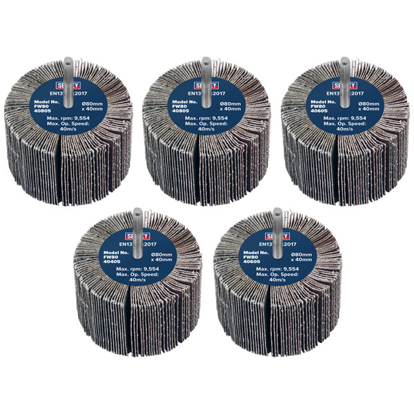 Sealey FW8040ASS 80 x 40mm Abrasive Flap Wheel on 6mm Shaft Assorted Grit - PK 5