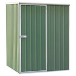 Galvanized steel panels easily assembled to form rigid and secure structure, Model No's GSS150815 and GSS150815G have a flat roof and double doors, all others have pent (sloping) roofs and single doors. Doors are secured by cross bolt and eyelet which will accept a padlock (not included) for additional security. All models are supplied with bolt down fixing kits.