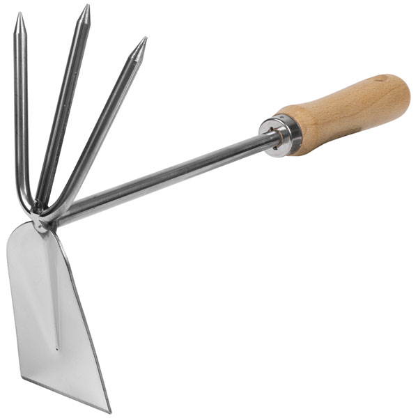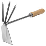 Combines both a hoe and cultivator in one tool, allowing for efficient soil cultivation, weeding, and aeration with a single versatile implement.
