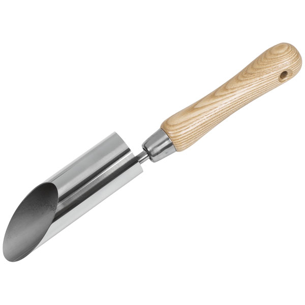 Rust-resistant, durable stainless steel head is designed for long-lasting performance and easy digging in soil for planting.