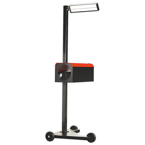 Suitable for pre-MOT inspection in garages and bodyshops. Utilises same optical box and aiming screen as fitted to our MOT approved headlamp beam setter. Fixed aiming screen. Internal analogue LUX meter for accurate light intensity measurement. Suitable for all types of cars and light commercial vehicles. Fitted with fixed column and rubber wheels.
