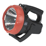 Weatherproof composite cased spotlight with swivel handle feature allowing pistol grip or carry handle operation. Integral adjustable foot doubles as carry handle when used in pistol grip mode. Ø125mm Lens with 3W CREE LED bulb produces 4-million candlepower (200 lumen) with two selectable modes of brightness lasting up to 12hrs on one charge. Suitable for a wide variety of applications. Supplied with 6V 2.5Ah sealed battery, in-car charger and 230V mains charger.
