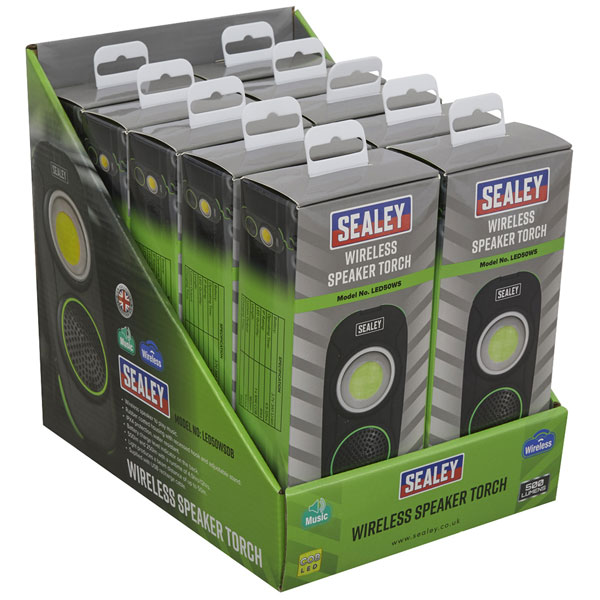 Sealey LED50WSDB Rechargeable Torch + Wireless Speaker 10W COB LED Disp Box 10