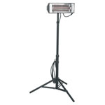 Electric, tripod mounted, heater with infrared quartz lamp. Reaches maximum heat output within seconds of being turned on. Supplied with 3m power cable and 3-pin plug. A totally dry heat with no condensation, no gas, no fumes and no smell. Ideal for workshops, bars, forecourts or gardens and terraces, if weather protected.