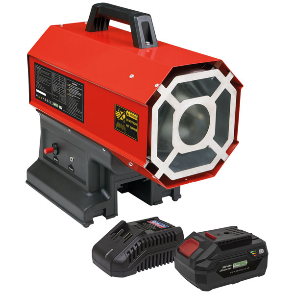 • • Part of the SV20 Series offering a one battery fits all solution, keeping costs down without compromising on performance. • Package includes: • Model No. - Description • LP69C - 30,000-68,000Btu/hr(9-20kW) SV20 Series 2-in-1 Cordless/Corded Space Warmer® Propane Heater. • CP20VBP4 - 20V 4Ah Lithium-ion Power Tool Battery for SV20 Series. • CP20VMC - 20V Lithium-ion Battery Charger for SV20 Series. • Model No. LP69CCOMBO