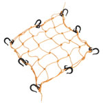Strong, elastic bungee cord net. Ideal for securing awkward items such as helmets and luggage while in transit. Fitted with eight hooks to provide a secure hold. Suitable for all motorcycles, scooters, mopeds and quad bikes.