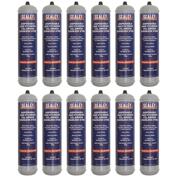 Sealey MIG/MIX/100/12 Disposable Carbon Dioxide/Argon Gas Cylinder 100g Box 12