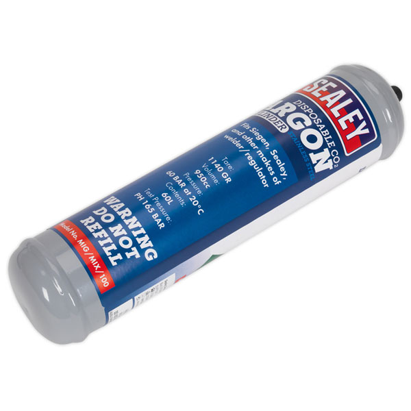 Portable sized disposable cylinder for the mobile welder. Fits Sealey and other makes of welder/regulator. When comparing price, always check fill capacity.
