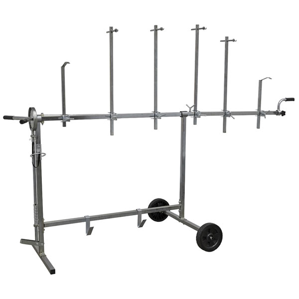 Ideal for doors, bonnets, bumpers, wings and spoilers. Adjustable and rotating bars make this stand suitable for almost all panel types. Portable for easy manoeuvring of application from preparation to spray booth. Includes S-hooks (x2), spray gun holder, vertical supports with fixed hooks (x4), supports with holes (x2).