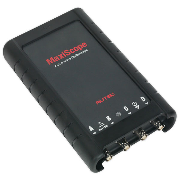 Four-channel automotive oscilloscope suitable for professional applications. Works in conjunction with MaxiSys® Tablets*, Model No's MS905 and MS908, to provide a powerful diagnostic tool. Powered directly from a USB port, with no need for batteries or power leads, making it versatile and portable. The four-channel function allows multiple components to be compared simultaneously. The scope is supplied with a wide selection of automotive type test leads, connectors and probes.