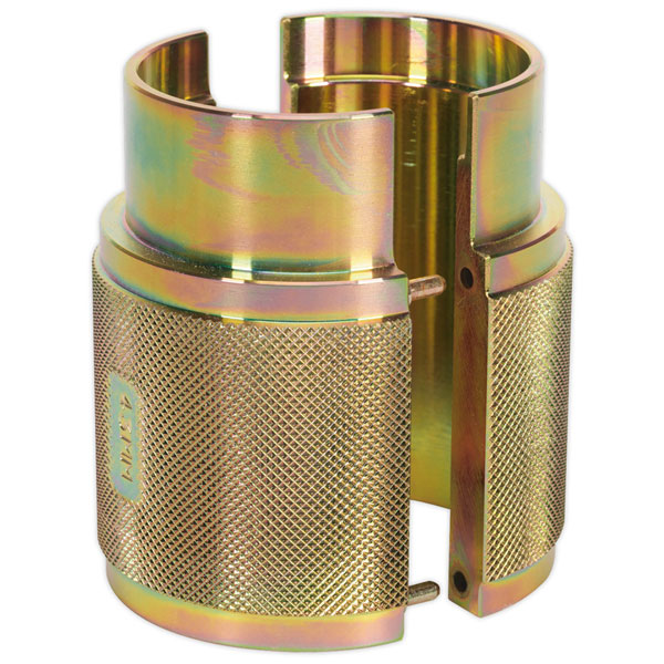 Professional seal driver for 43mm diameter forks. Split design for easy operation on both conventional and USD (inverted) forks for the installation of fork seals. Hardened and tempered carbon steel, finished with zinc plating for corrosion resistance. Heavy knurled grip gives positive purchase when in use and limits risk of slip if hands are oily. Limits potential damage to the forks caused by using other methods.