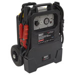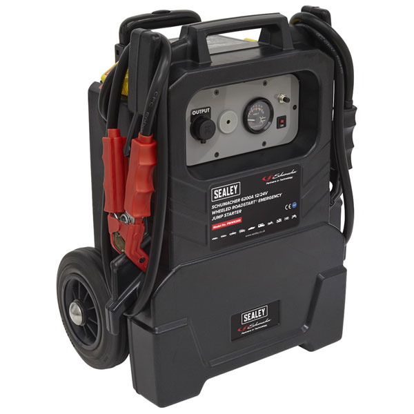 High performance (2x 32Ah) AGM battery, specially formulated to jump-start up to 1500hp diesel vehicles. Rotomolded high durability casing with lifetime guarantee. Patented 4A microprocessor controlled speed charging and thermal runaway protection. Unlike other booster packs, can be left safely on charge continuously. Audible warning signals if the unit has been turned on for too long without being connected to a battery and reverse polarity. Isolating rotary on/off switch and analogue display showing the internal battery level. 12V Output socket can be used as a memory saver as well as for powering accessories such as mini compressors. Ventilation system vents gases directly out of the casing via a 'Whistle' outlet, warning the user of a potential issue. A fuse integrated in the (+) clamp provides short-circuit and overload protection. Heavy-duty clamps with a braided link between each jaw for maximum power transmission. Curved clamps provide easier access to awkward battery terminals.