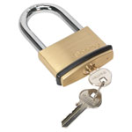 Key operated padlock with corrosion resistant solid brass body and hardened steel long shackle. Lever locking mechanism and precision pin tumbler brass cylinder. Bumper surround prevents damage to locked item. Supplied with two keys.