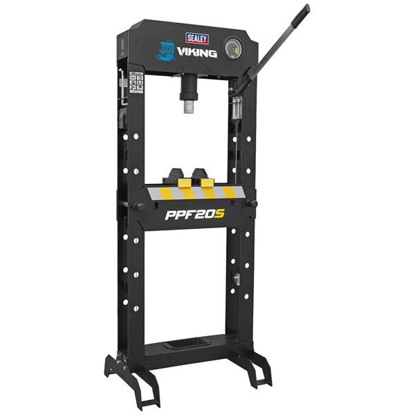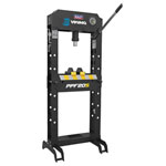 Heavy-duty steel frame construction with handle operated hydraulic pump unit.