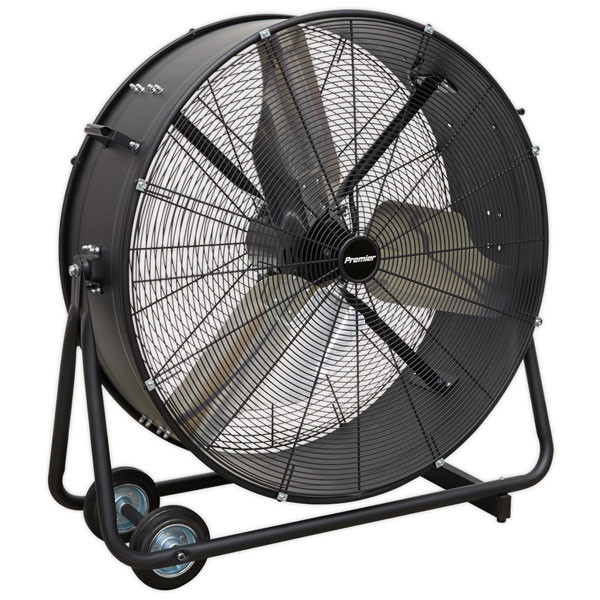 High efficiency industrial fans with improved motor and blade design resulting in higher velocity with up to 30% more area coverage and reach. Robust unit with heavy-duty gauge steel casing, guard and frame. Handle, wheels and tilt function cradle stand, allow the control of airflow where it is needed. Carefully balanced and fully guarded blades provide safe operation. Suitable for industrial, commercial, agricultural, automotive and showroom applications. Fitted with 3-pin plug.