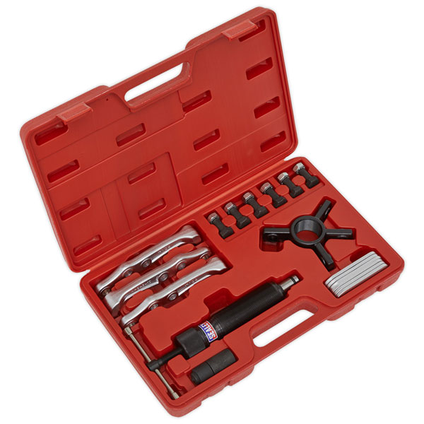 Forged steel two-way yoke allows twin or triple leg pulls. 10tonne Hydraulic power unit with tommy bar. Suitable for pulling hubs, flanges, gears and bearings. Three 3-position puller arms and three sets of extension plates, supplied in storage case. Hydraulic ram interchangeable with others in series.