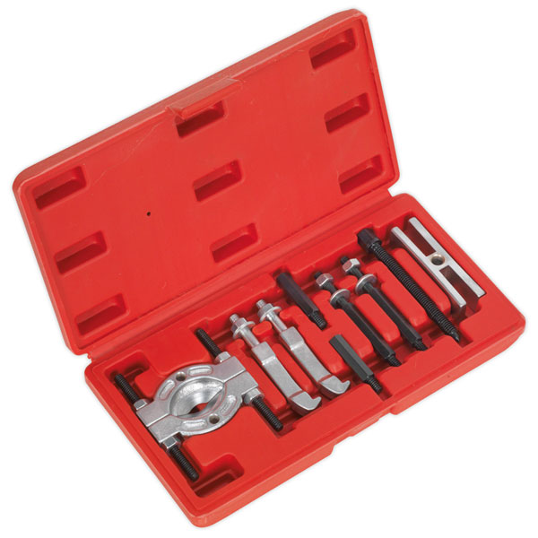 Compact set containing bearing separator, yoke and extensions. Chrome Vanadium components ensure long tool life. Also suitable for removing small gears, wheels and fittings from shafts. Supplied in storage case.