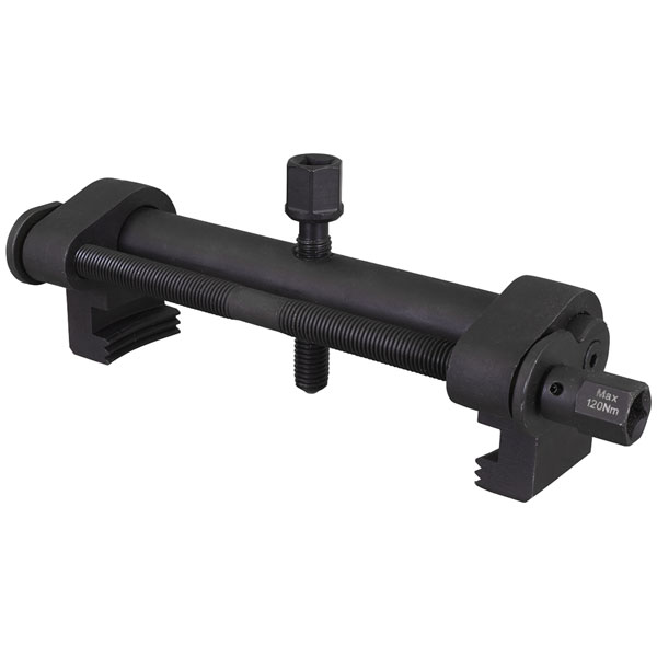 Fitted with an adjustable bar, the ribbed jaws can fit a wide range of pulleys.