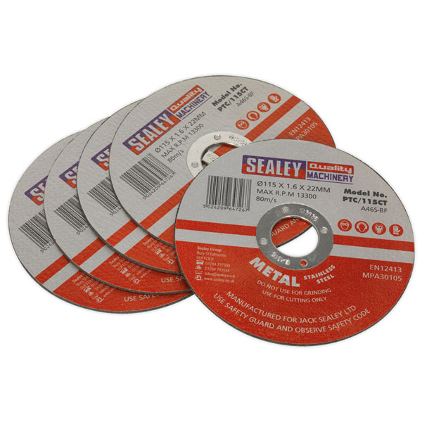 Sealey PTC/115CT5 Cutting Disc Ø115 x 1.6mm 22mm Bore - Pack Of 5