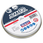General purpose flat cutting disc recommended for use with Sealey and other manufacturers of grinding and cutting power tools. Suitable for cutting stainless steel. Supplied in metal tin.