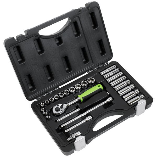 Professional socket set manufactured from hardened and heat treated Chrome Vanadium steel.