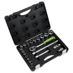 Professional socket set manufactured from hardened and heat treated Chrome Vanadium steel.