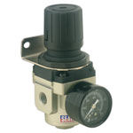 Suitable for workshop air supply set-ups. Features locking control knob for presetting air pressure and pressure gauge. Supplied with wall bracket.
