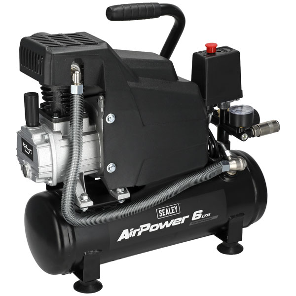 Compact and portable, this compressor is suitable for use with the Sealey range of air nailers and air brushes.