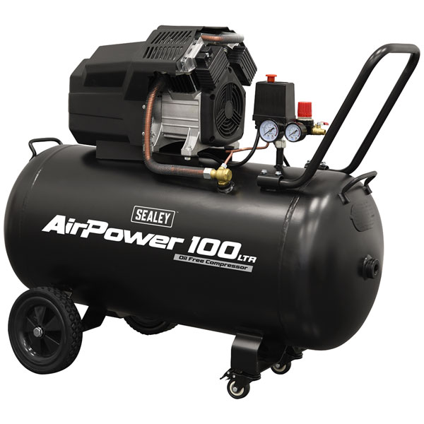 Sealey SAC10002 Air Compressor 100L V-Twin Oil Free Direct Drive 3hp