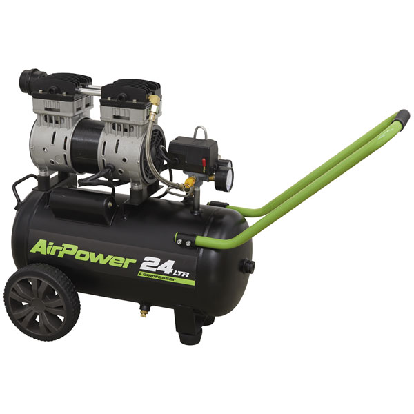Low noise compressor runs at only 79dB(A), suitable for places where a standard compressor would disturb work or people in the vicinity. Ideal for use where an oil free air delivery is required. Aluminium cylinder head with cast iron cylinder gives added resistance to wear. Suitable for general-purpose workshop applications.