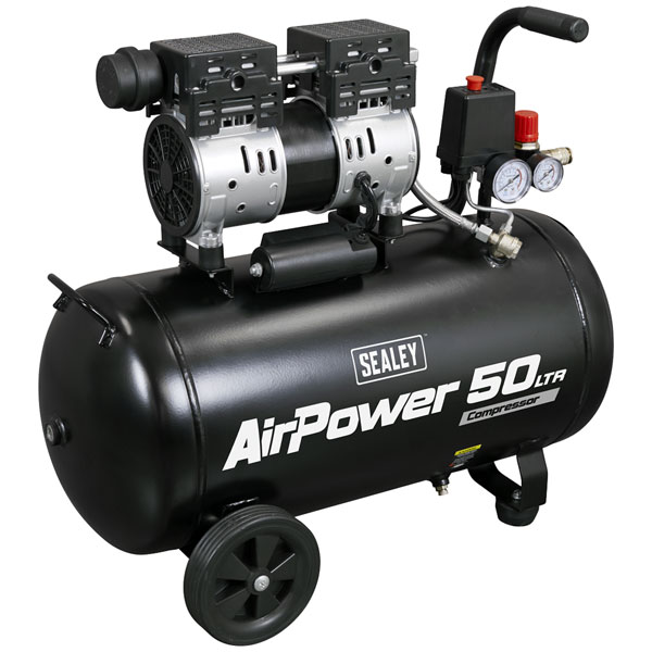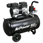 Low noise compressor runs at only 74dB, suitable for places where a standard compressor would disturb work or people in the vicinity.