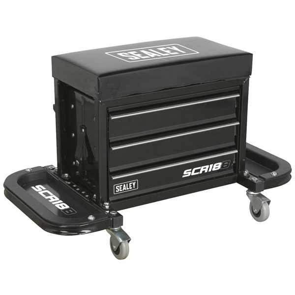Sealey SCR18B Mechanic's Utility Seat & Toolbox - Black