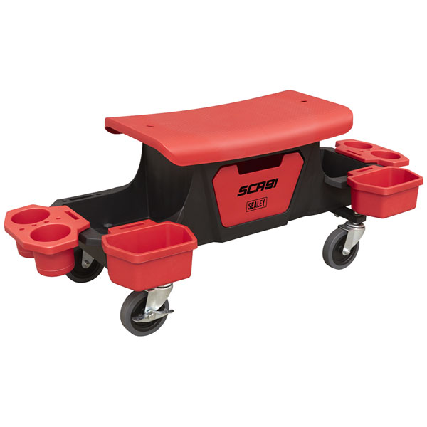 Supplied with six interchangeable cup/bottle holders and storage trays for tools and components.