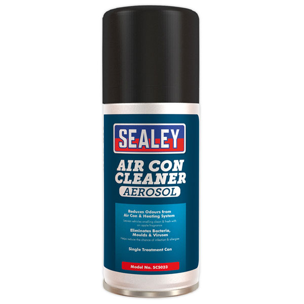 Air conditioning sanitizer with an apple fresh fragrance, eliminates odours from air-con and heating systems, leaving the system clean and free of germs.