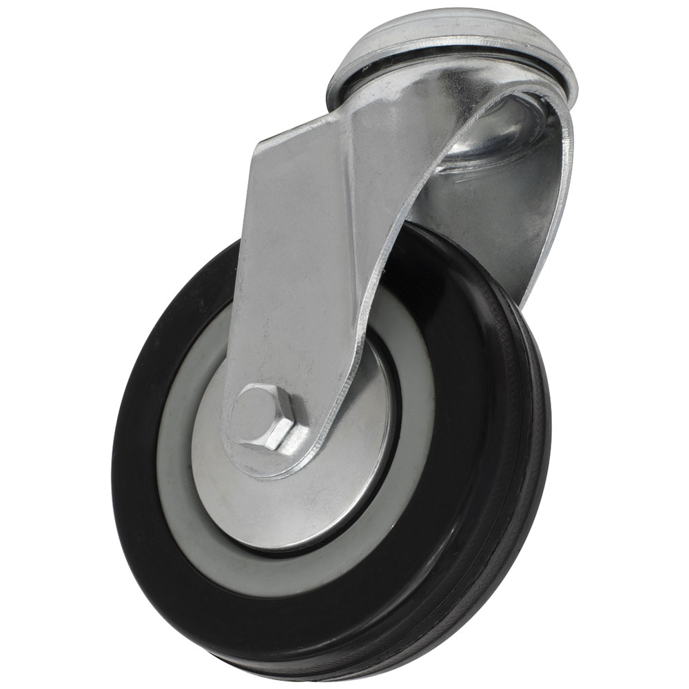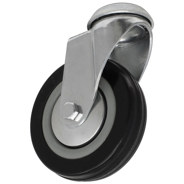 Economy range swivel bolt hole castor. Durable rubber/polypropylene wheel with a steel centre.