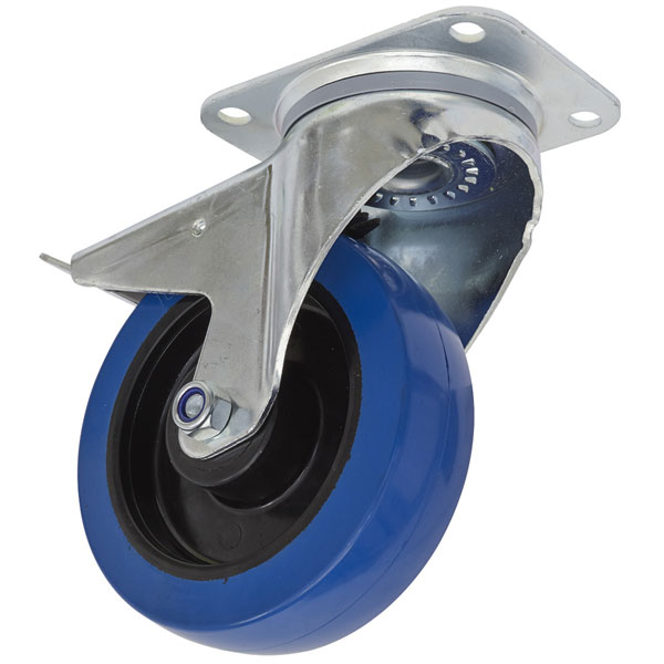 Extra-heavy-duty castor. Non-marking polyamide/elastic wheel. Swivel plate castor with total lock brake system which locks the whole castor not just the wheel. 2 Year guarantee*.