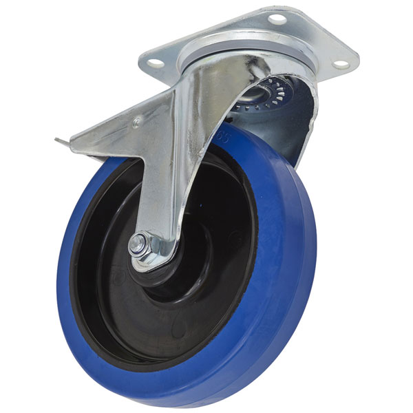 Extra-heavy-duty castor. Non-marking polyamide/elastic wheel. Swivel plate castor with total lock brake system which locks the whole castor not just the wheel. 2 Year guarantee*.