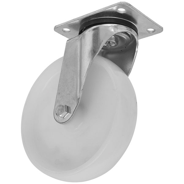 Heavy-duty swivel castor. Nylon wheel with cast aluminium core.
