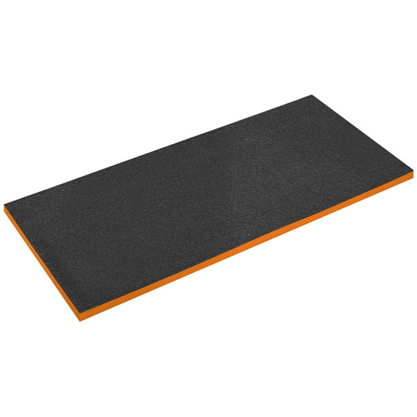 • • Create your own tool tray inserts with this easy peel foam. • Layered foam allows for depths to be set to suit the tool. • Bright coloured foam underneath a black top highlights tools for a professional look. • Can be cut to fit any tool tray or drawer. • Made from 100% Polyethylene. • Dimensions: 1200 x 550 x 30mm. • Model No. SF30OR
